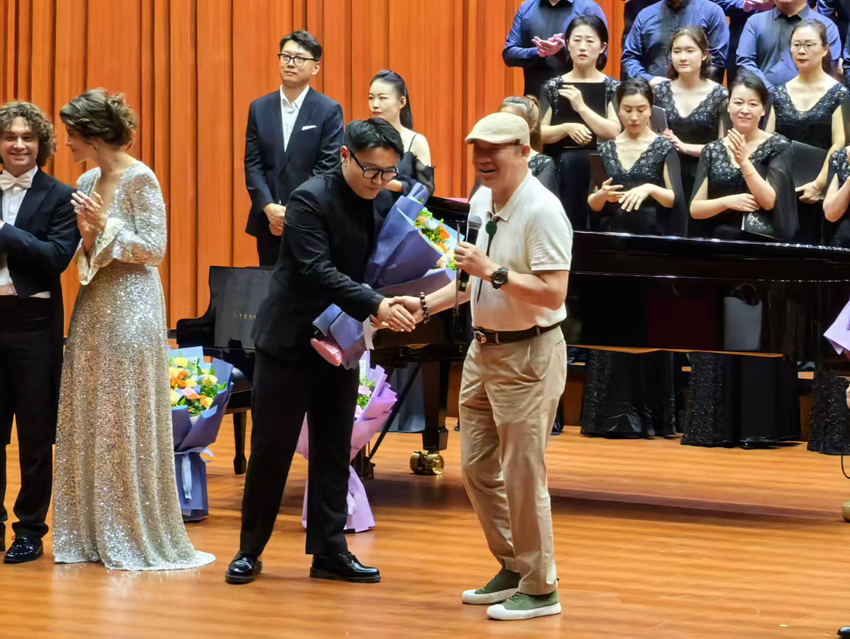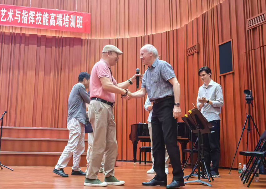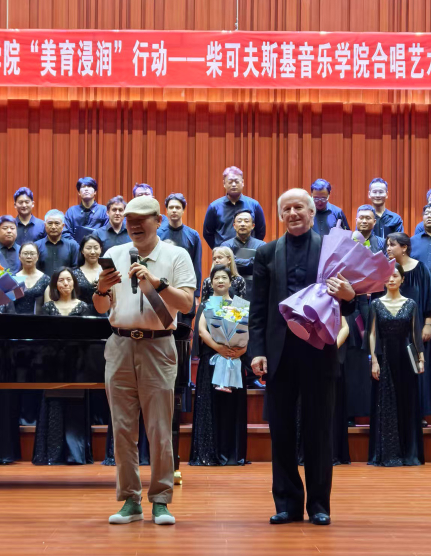 尊敬的阿列克谢教授以及柴可夫斯基音乐学院各位艺术家们,河南艺术职业学院周宝全校长以及贵校音乐学院长党委书记郑志强,以及来自全省各地的培训班学员们:紧张有序、干货滿滿的,由河南艺术职院与河南省合唱协会主办的2025柴可夫斯基音乐学院合唱艺术与指挥技能高端培训班,经过三天、多维度、紧张而有序的培训活动,此时此刻即将圆满落下帷幕,短短的三天时间我们共组织大师与学员面对面的合唱训练与合唱指挥课;柴院合唱团专场音乐会;两场独唱、独奏音乐会;阿列克谢和他的助教们现场为河南青年指挥合唱团的公开排练课;从及今天上午为四百多名学员参与的无伴奏《金色浮云》和《在水一方》两首作品的合唱排练课,还有就是刚刚结束的培训班结业专场音乐会。难以想象,在不知不觉中咱们都经历、参与了这么多精彩的活动……我想此刻我们要以热烈的掌声,感谢阿列克谢教授和他的助教们、艺术家们、感谢艺院的领导们,感谢为大家热心服务的艺院和协会的志愿者们!