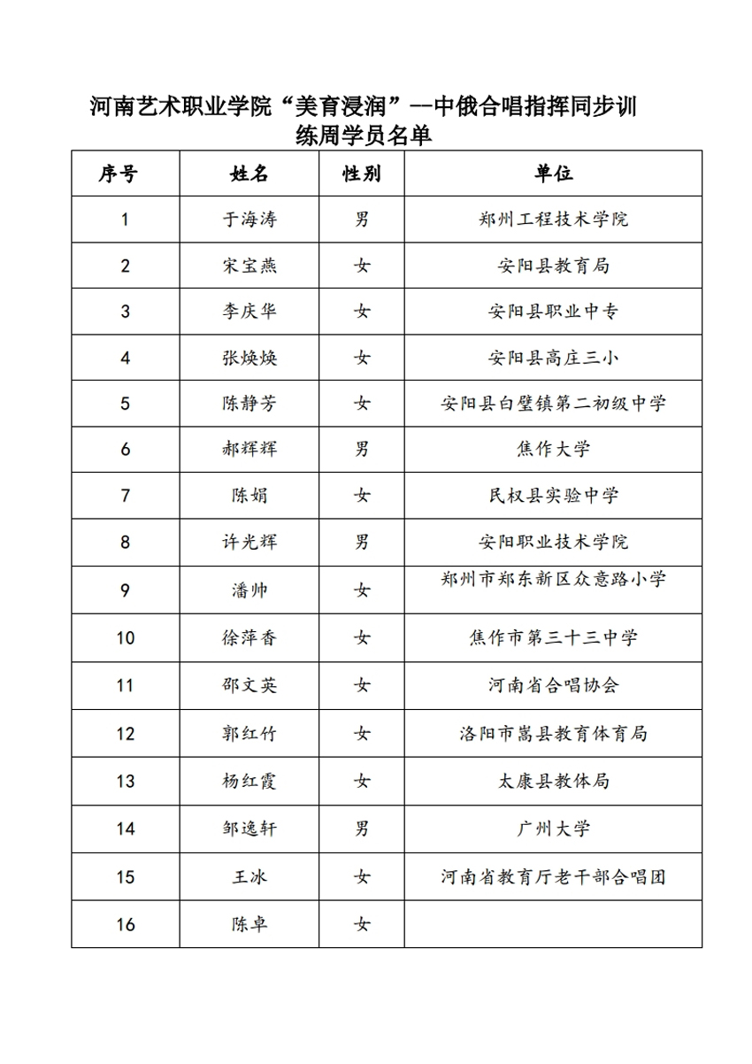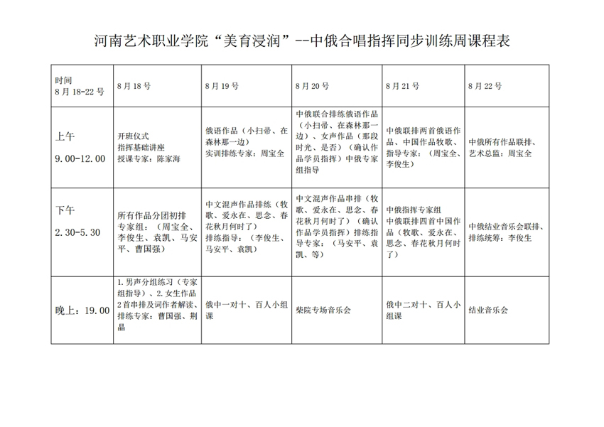 经过认真筹备,由河南艺术职业学院与河南省合唱协会共同主办的“河南艺术职业学院‘美育浸润’--中俄合唱指挥同步训练周”于8月18日上午在河南艺术职业学院音乐学