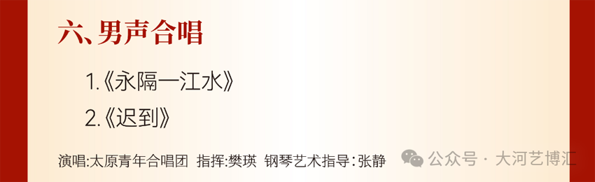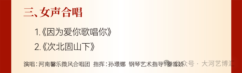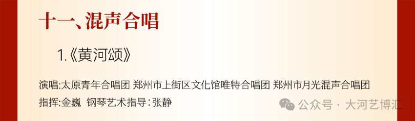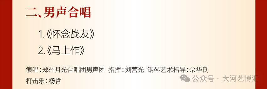 音乐会以金巍编配的经典作品《开封有个包青天》拉开序幕,混声合唱的磅礴气势瞬间点燃全场。随后,《追梦人》、《父亲的草原母亲的河》、《怀念战友》、《十送红军》、《咱们说说心里话》等耳熟能详的旋律以全新合唱形式呈现,引发观众共鸣。值得关注的是,金巍特别为本次音乐会改编的《黄河颂》、《只有河南》等系列首次公开亮相,其中《长歌行》等作品将唐诗宋词与现代和声巧妙结合,展现了古典诗词的意境之美。