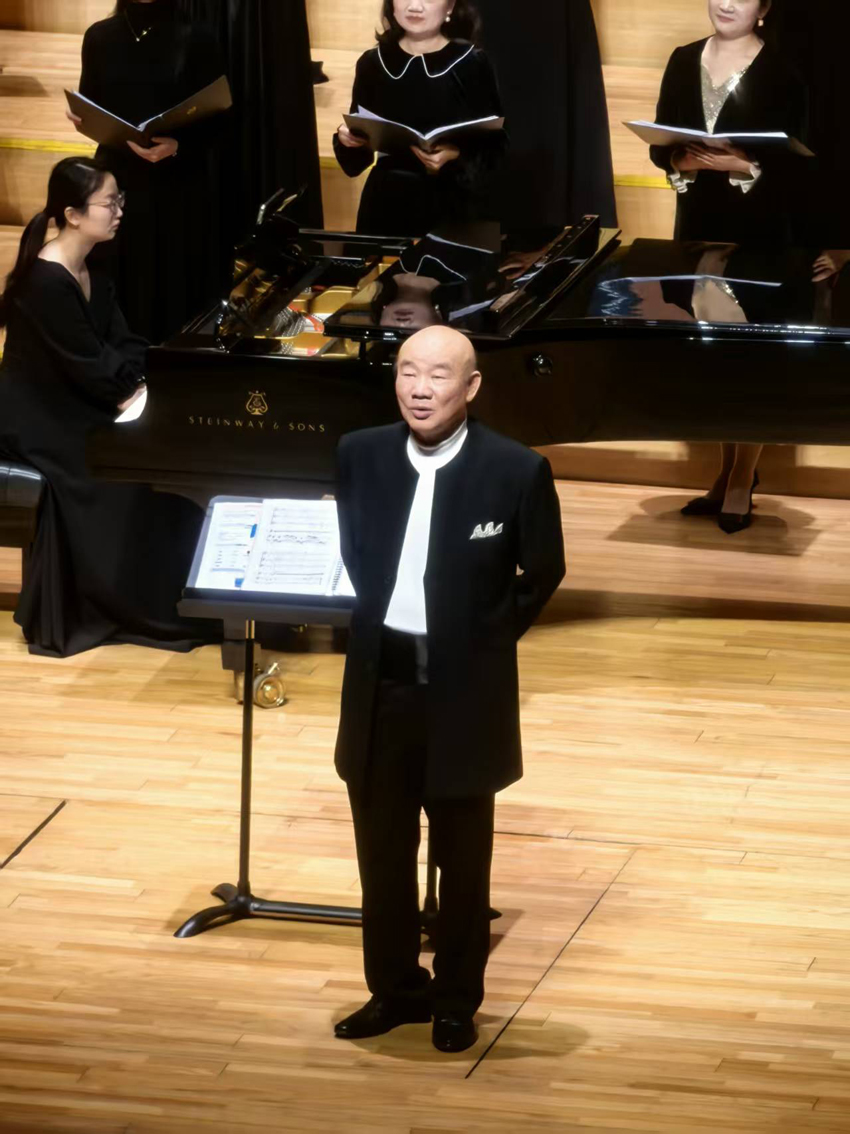 一场音乐会,二十多首曲目,除了四组童声歌曲由杨欢、王润华等青年指挥家完成,其余十多首女声、男声、混声合唱歌曲,全由陈家海教授一人指挥,古稀之年需要的不仅是体力,更是灼灼精力。这是一种坚持,是对合唱事业最深厚的爱!令人钦佩,心生感动。