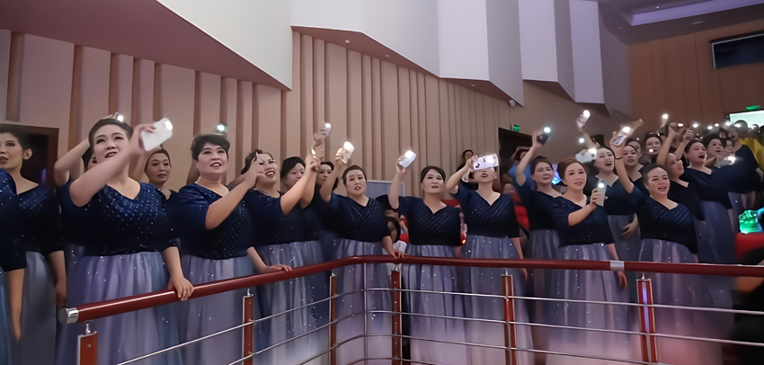 尾声《但愿人长久》将音乐会气氛推入高潮。台上台下人们打开手机电筒,点点星光汇成银河,让这份情,照亮此刻,“明月几时有,把酒问青天。…”千年之后,全场同唱这穿越时空的祝福,让这份对团圆与美好的祈愿,温暖人间。