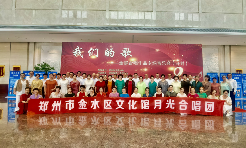 郑州市金水区文化馆月光合唱团是一支屡创佳绩、朝气蓬勃、具有较高水准的中老年合唱团,成立近30年来,积极参与各类大型演出,演唱过许多大型声乐作品并多次举办主题音乐会、新年晚会,在省内外多项合唱比赛中荣获金奖,被誉为代表中原文化的合唱艺术名片。