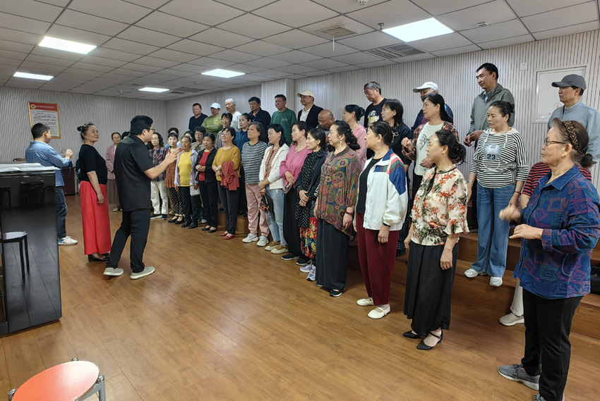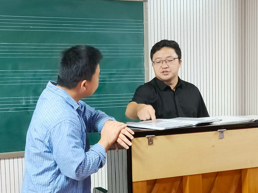他一遍又一遍示范,不厌其烦的讲解,深入浅出,寓教于乐的教学方法,让团员们欣赏不已,受益匪浅。针对存在的问题,他不仅提出来合理化建议,而且拿出行之有效的解决方法。他特别强调要以歌传情,用心歌唱,要学会讲故事,要理解歌词意境,置身于曲,处地于歌。