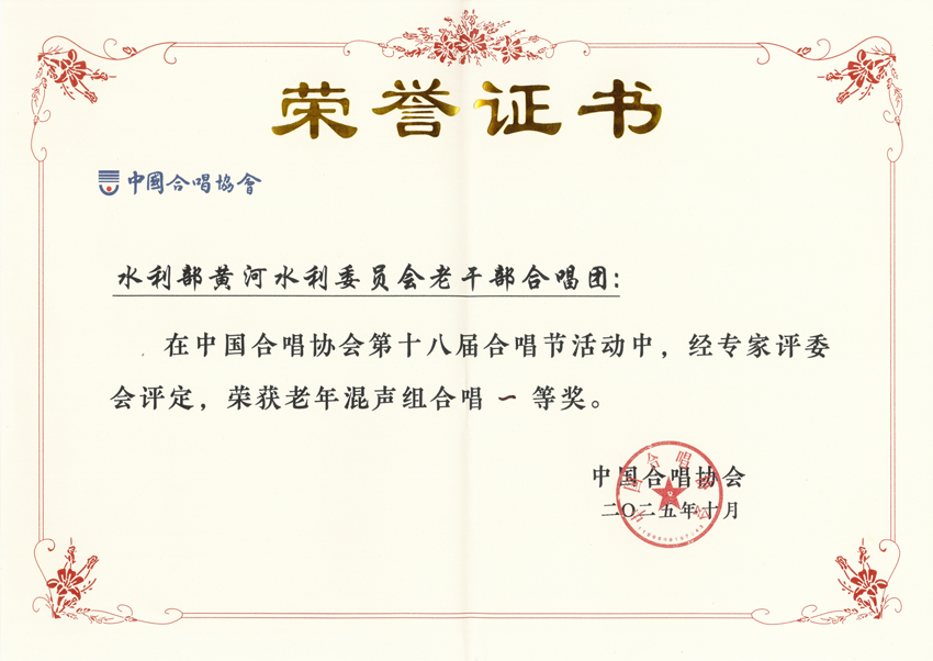 中国合唱节是中国合唱协会主办的全国性、多类型合唱赛事,也是最具权威性的合唱比赛之一,是以艺术提升为目的的合唱盛会。金秋十月,在美丽的海滨城市青岛举办的第十八届合唱节中,经专家评委会评定,在63支参赛队伍中,水利部黄河水利委员会老干部合唱团(以下简称:黄委老干部合唱团)获老年混声合唱一等奖、最佳指挥奖和优秀钢伴三项最高荣誉。