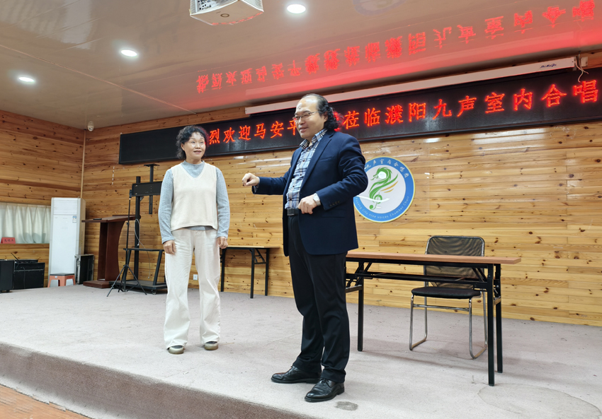 10月23日,濮阳九声室内合唱团排练现场暖意融融,中国音乐家协会会员、中国音协合唱联盟理事、河南省合唱协会副理事长、河南理工大学音乐学院执行院长马安平教授亲临指导,为合唱团即将到来的重要展演注入专业力量,让团员们在精进技艺的同时,深切感受合唱艺术的深厚魅力。