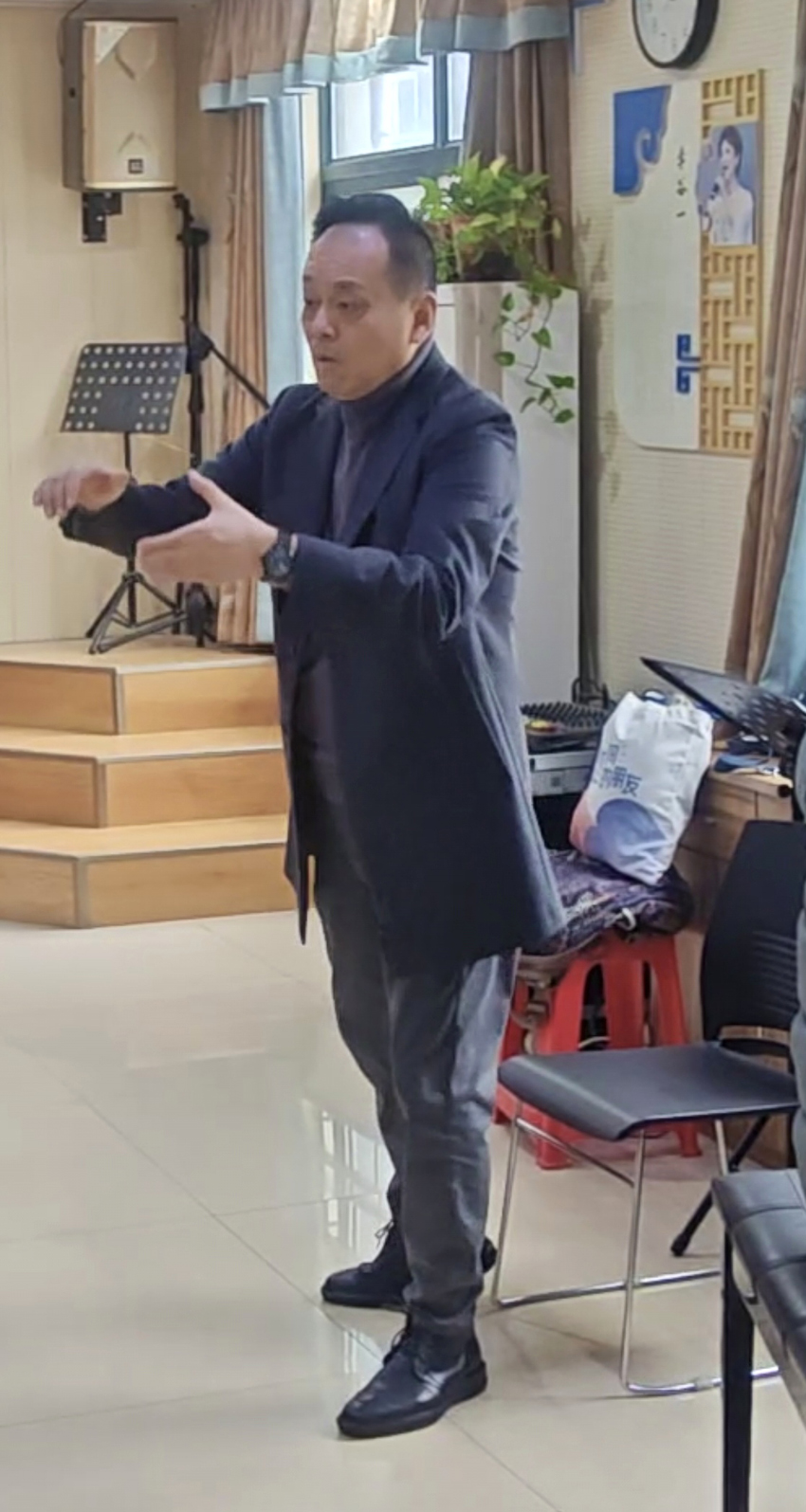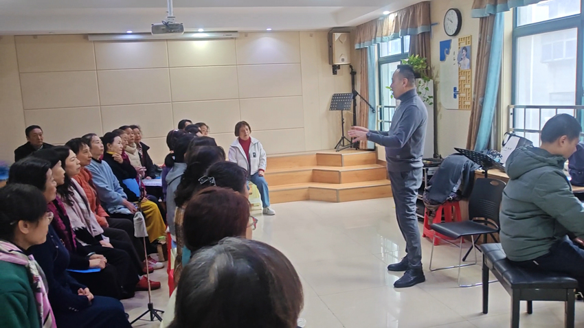 11月7日上午,河南省合唱协会副理事曹国强老师冒雨来到了郑州美音·秋韵合唱团的排练现场,在场的合唱团员精神饱满迎接曹国强老师的到来。