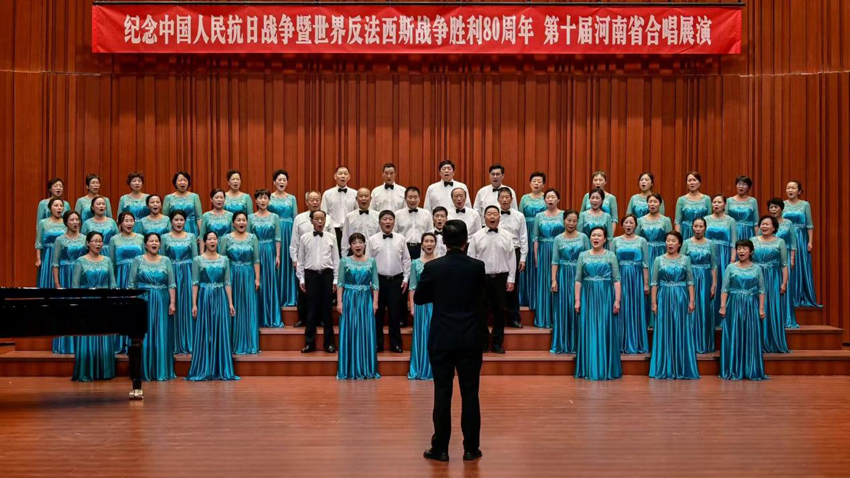 9月21日,纪念中国人民抗日战争胜利暨世界反法西斯战争胜利80周年第十届河南省合唱展演,在河南艺术职业学院隆重举行,来自全省各地几十个合唱团体齐聚一堂,演出以豪迈激昂的歌声回顾历史,展望和平与希望。
