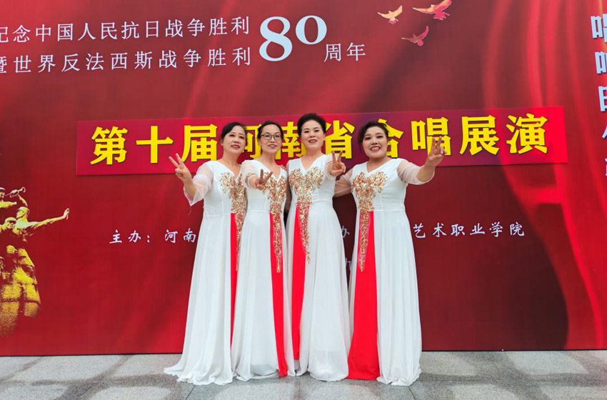 说句实在话,我们是小团,有专业歌唱素养的团员几乎没有,只有七八个唱得稍好一些的。团长教我们真是费尽了心思。每次排练都不厌其烦地告诉团员们发声技巧,我们用心学、用心悟,总是达不到预期,团长还是耐心地教大家,当团员们唱得还不错的时候,团长是发自内心的高兴。有时团员们咋也唱不好的时候,团长依然在鼓励着大家。就参赛不参赛这件事,团长、团员也有动摇,但最终还是抱着学习的态度参加了“第十届河南省合唱节”的比赛。