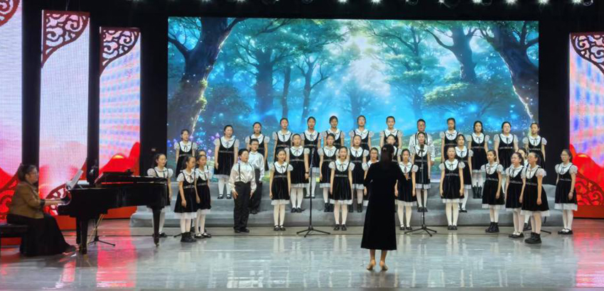 合唱音乐会在《唱支山歌给党听》的深情旋律中直接拉开帷幕。金笛艺术初心合唱团的女声合唱饱含真挚情感,瞬间将观众带入温暖的氛围里。随后,《辣椒红》《对花》《凤阳花鼓》等经典曲目轮番上演,混声合唱的厚重、无伴奏合唱的灵动,让传统民歌焕发全新活力。漯河市激情合唱团带来的《七律・解放军占领南京》《今朝》气势磅礴,歌声里满是对革命先辈的致敬与对时代的礼赞;漯河小学小荷合唱团的孩子们用《中国新少年》《大鹿》两首童声合唱,以清澈纯真的嗓音传递出少年的朝气与活力,引得现场掌声连连。