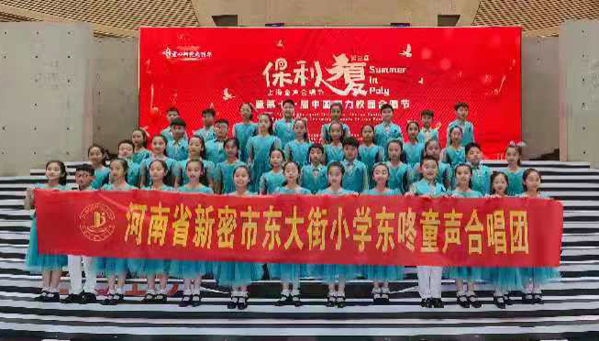 日前,由中国合唱协会主办的“光辉的旗帜·同唱中国梦”第十一届中国魅力校园合唱节暨保利之夏童声合唱节在上海保利大剧院圆满闭幕。这是一场汇聚全国优秀合唱团的歌唱盛宴,新密市东大街小学东咚合唱团也非常荣幸的成为这64支合唱团之一。经过两天三场比赛激励的角逐,合唱团以《落雨大》、《歌向远方》两首曲目取得了小学组一等奖的优异成绩。