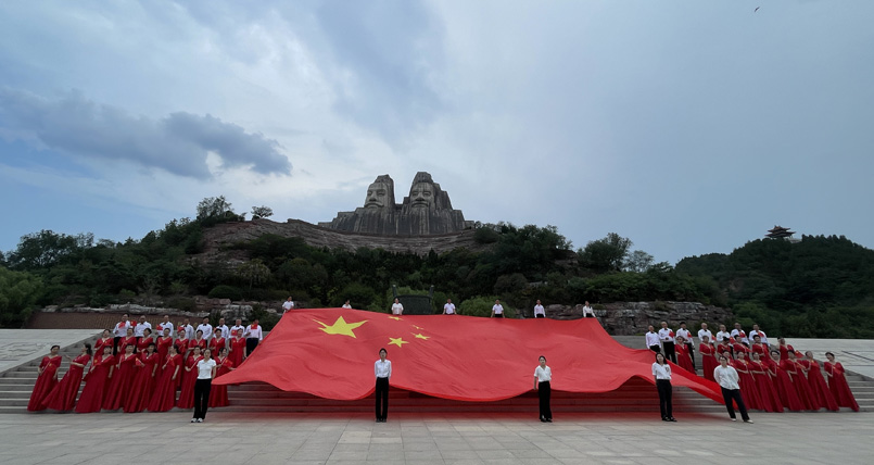 大家头顶烈日,脚踏热土,在炎黄二帝巨型雕像下,手持鲜红的党旗,心潮澎湃地唱起了《花开中国》《在灿烂的阳光下》,歌声嘹亮,舞蹈蹁跹,党旗挥舞,国旗威武。呈现出政通人和、热闹非凡的景象。彰显出炎黄子孙热爱祖国,热爱中国共产党的赤诚之心。