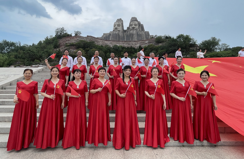 七.一前夕,郑州市金水区文化馆月光合唱团参加了由郑州市非遗保护和文旅文创融合发展中心和黄河文化公园为庆祝中国共产党诞辰104周年,在著名的黄河游览区联合举办了一场别开生面的庆祝活动,用实际行动讴歌我党的的丰功伟绩,为党庆生。