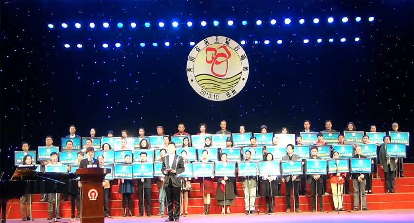 2013年10月27日,紧张而热烈的第五届河南省合唱节经过两天的比赛,圆满落下了帷幕,27日晚,合唱节在河南省艺术中心音乐厅举行了隆重的颁奖仪式及闭幕式合唱演出。省文化厅崔为工副厅长出席闭幕式,他在讲话中代表省文化厅及第五届合唱节组委会对合唱节的成功举办表示了热烈的祝贺,对来自全省各个合唱团的团员们致以亲切的问候,并对获奖合唱团颁发了证书。