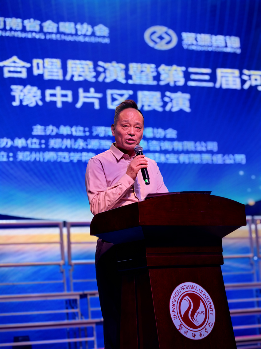 金秋送爽,万里河山披锦绣;丹桂飘香,嵩山学堂歌嘹亮;2024年10月14日——15日,为期两天的第⼗届河南省⼤河风合唱展演暨第三届河南省中⽼年合唱节豫中片区展演在郑州师范学院嵩山学堂音乐厅落下帷幕。郑州师范学院老干部工作处处长、校关工委李俊民副主任。