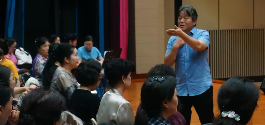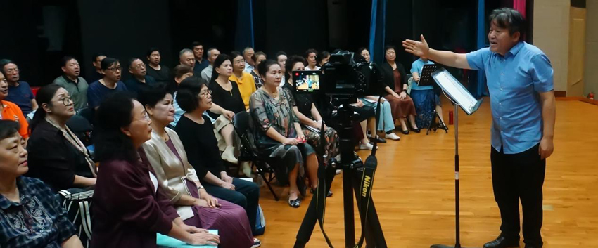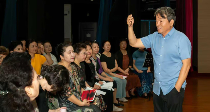 金秋九月,在全国人民共同庆祝抗日战争胜利80周年的特殊时节,河南省老干部合唱团迎来了一场高水平的艺术指导。9月11日上午,河南艺术职业学院院长、省音乐家协会副主席、省合唱协会副理事长周宝全教授亲临合唱团排练现场,指导经典抗战歌曲《娄山关》、《松花江上》的排练工作,为老同志们带来了一堂深入浅出的声乐大师课。