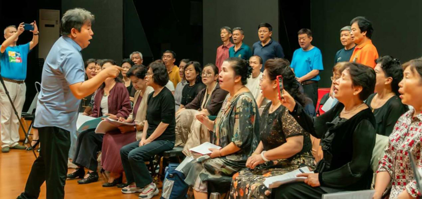排练厅内,歌声激昂。合唱团成员以饱满的热情和真挚的情感演唱了这两首承载着民族记忆的经典作品。周宝全教授在认真聆听后,首先对老同志们的演唱给予了高度评价。"随后,他结合自己多年的艺术实践和教学经验,以"精益求精"的艺术态度,进行声乐辅导。