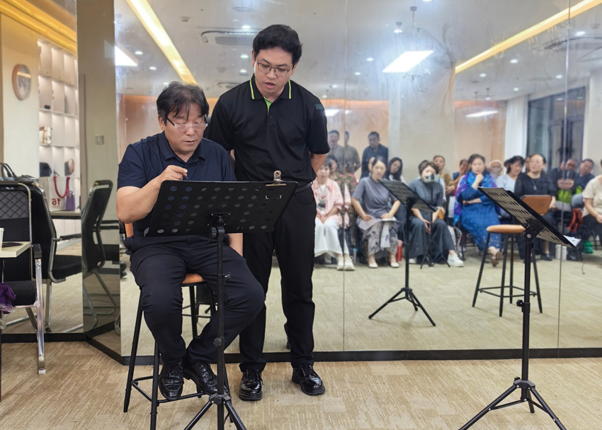 仔细倾听了大家的演唱后,周教授给予了高度评价,接下来,周教授对两部作品分别进行精准指导,排练现场秒变“专业小课堂”。