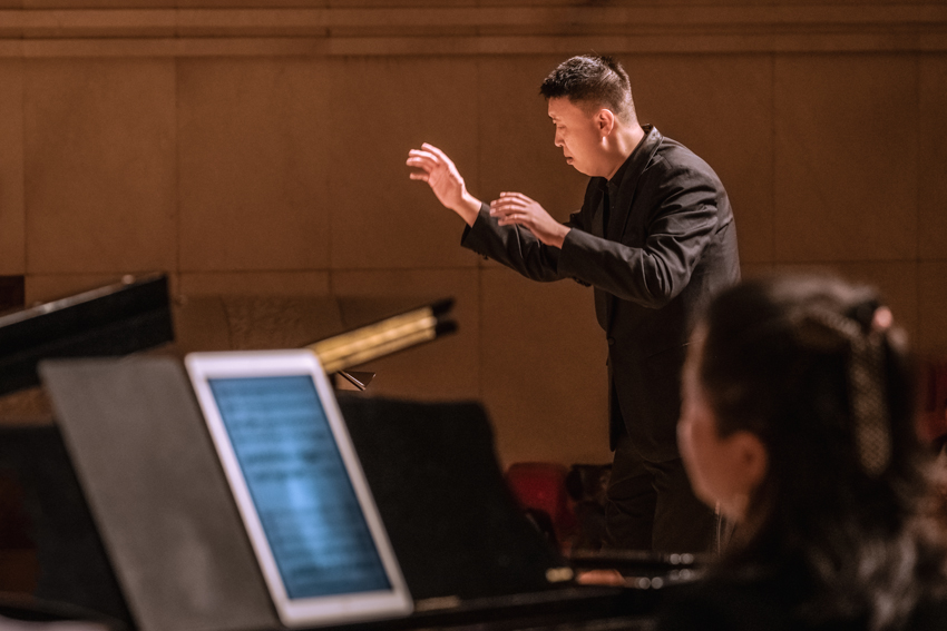在这场音乐会中,青年指挥家刘营光与聂蓓蓓、郭一鸣分别执棒南北月光合唱团,指挥家以精准而富有表现力的手势,将合唱团各声部完美融合,展现出非凡的音乐掌控力。钢琴艺术家佘华良与戚鸣、孟媚分别担任两团的钢琴艺术指导,他们以精湛的琴技为合唱铺就坚实的音乐基底。打击乐演奏家杨哲的出色演绎则为作品增添了丰富的节奏色彩与感染力,共同铸就了演出的完美艺术呈现。