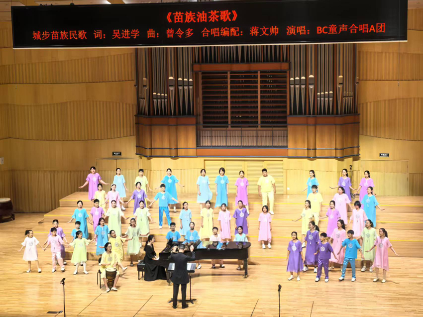 童声合唱《苗族油茶歌》、成步苗族民歌《打砣磥》、以及民歌《道情调》,曲曲诙谐欢快、歌歌情趣盎然。
