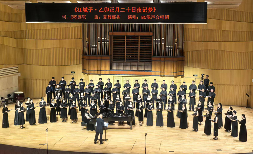 有混声合唱苏轼的宋词《江城子》,一句“十年生死两茫茫。不思量,自难忘。千里孤坟,无处话凄凉”将对爱妻绵绵不尽的思念和梦中的缠绵,表达的情真意切。