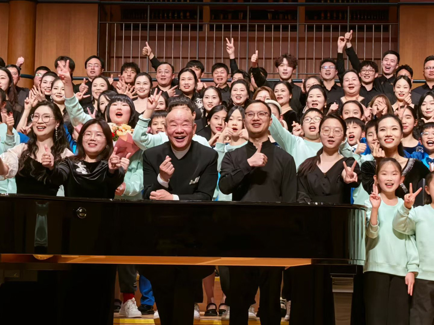 一场音乐会,二十多首曲目,除了四组童声歌曲由杨欢、王润华等青年指挥家完成,其余十多首女声、男声、混声合唱歌曲,全由陈家海教授一人指挥,古稀之年需要的不仅是体力,更是灼灼精力。这是一种坚持,是对合唱事业最深厚的爱!令人钦佩,心生感动。