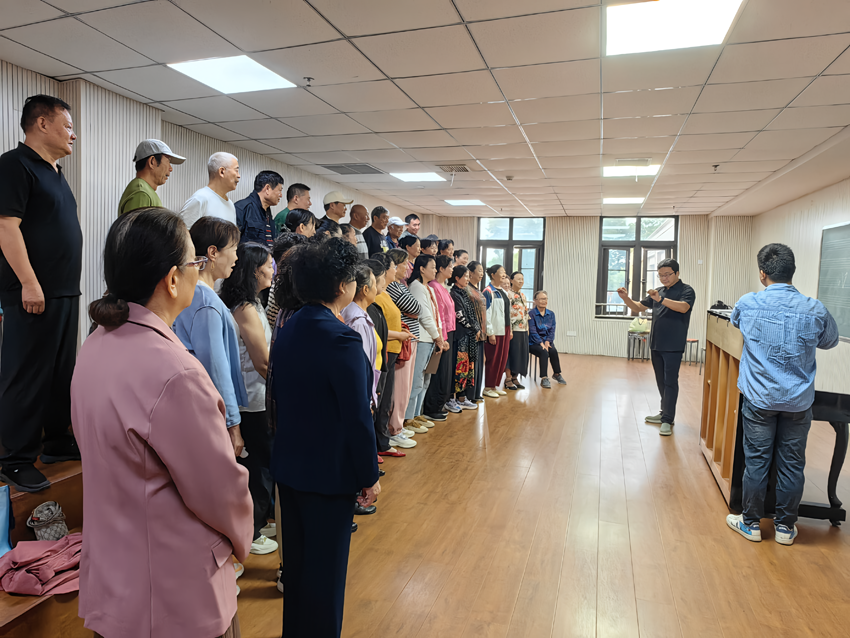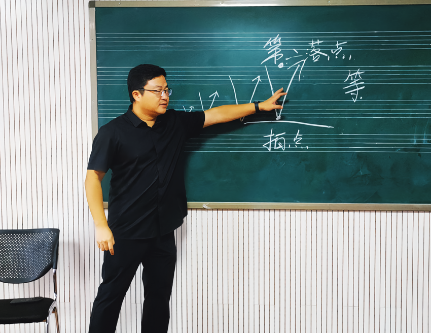 他一遍又一遍示范,不厌其烦的讲解,深入浅出,寓教于乐的教学方法,让团员们欣赏不已,受益匪浅。针对存在的问题,他不仅提出来合理化建议,而且拿出行之有效的解决方法。他特别强调要以歌传情,用心歌唱,要学会讲故事,要理解歌词意境,置身于曲,处地于歌。