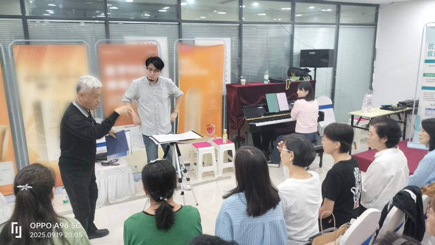 秋风送爽,丹桂飘香。在由河南省合唱协会举办的“纪念中国人民抗日战争胜利暨世界反法西斯战争胜利80周年”为主题的第十届合唱节即将到来之际,著名指挥家、河南省合唱协会副理事长宋照敏在百忙中抽出宝贵时间,于2025年9月19日晚上莅临郑州田园室内合唱团指导排练。