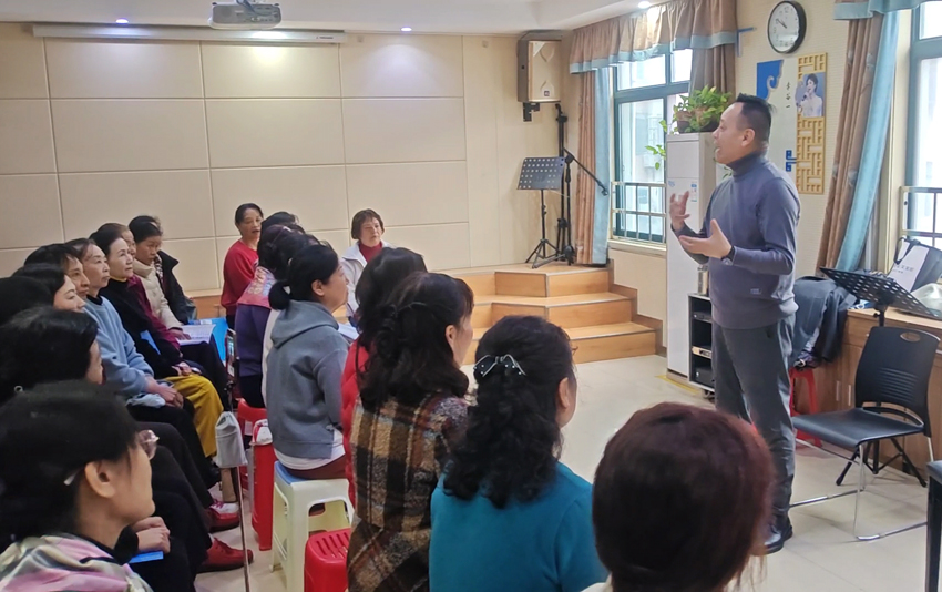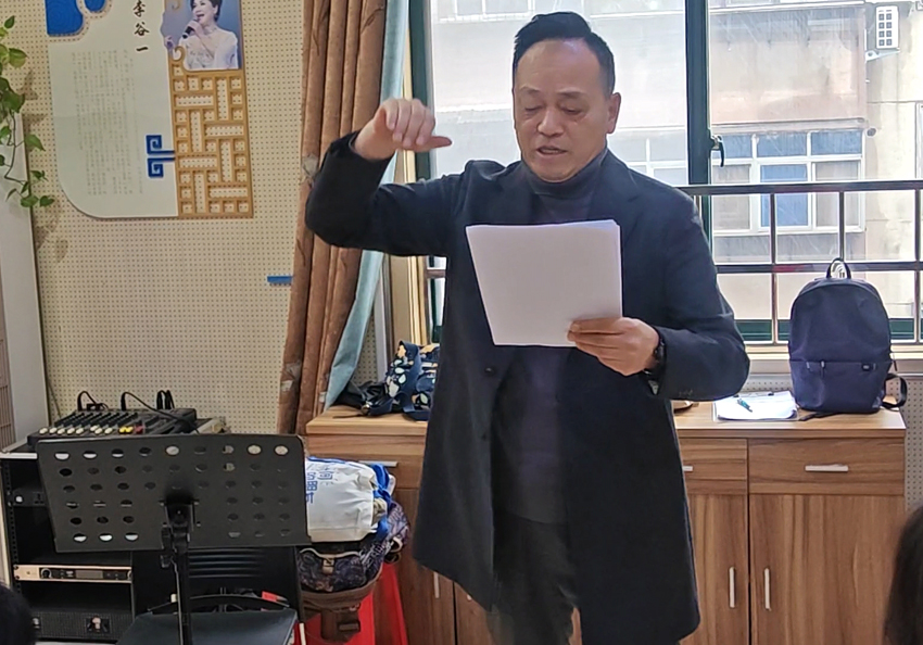 接着,曹国强老师对该团排练的两首作品进行了现场指导,他还即兴指导排练了《送别》这首作品,让大家在有短时间内声音品质有了很大提高,虽时间有限,但指导手法非凡,语言生动,通俗易懂,使在场的团员受益匪浅。