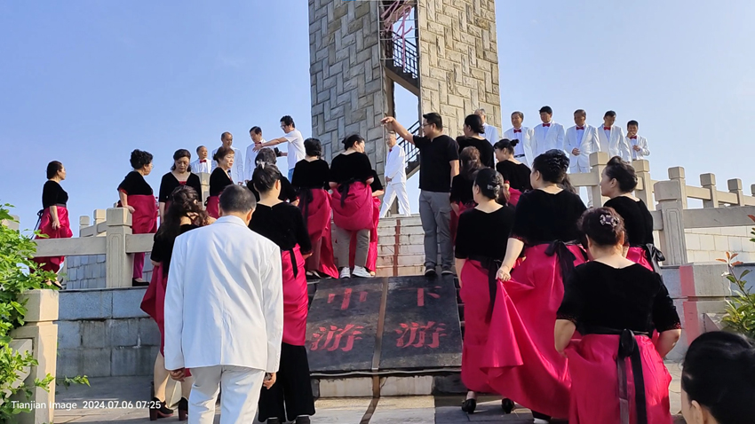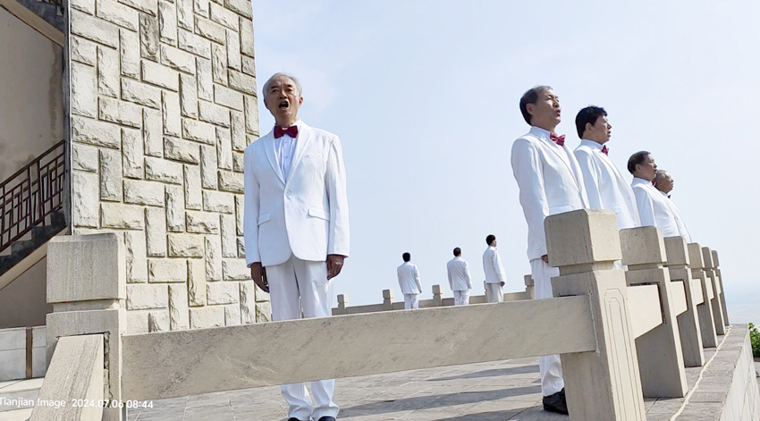 7月6日上午,在荥阳市桃花峪的黄河中下游分界碑前,团员们顶烈日,冒酷暑,以滔滔黄河为背景,在杜昱老师的指挥下,满怀激情地高唱《黄河之歌》,充分抒发民族振兴、自信自强的爱国情感。在拍摄过程中,团员们高标准,严要求,对每一个音符,每一句歌词和每一副表情都要求完美至臻。经过大家的共同努力,顺利完成了现场的拍摄工作。全体团员的敬业精神和演唱水平受到活动负责人和摄制组的好评。