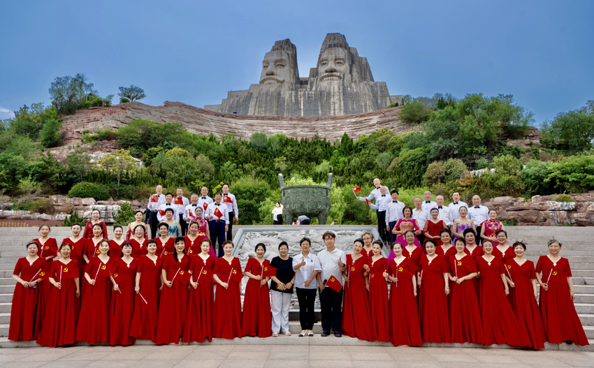 大家头顶烈日,脚踏热土,在炎黄二帝巨型雕像下,手持鲜红的党旗,心潮澎湃地唱起了《花开中国》《在灿烂的阳光下》,歌声嘹亮,舞蹈蹁跹,党旗挥舞,国旗威武。呈现出政通人和、热闹非凡的景象。彰显出炎黄子孙热爱祖国,热爱中国共产党的赤诚之心。