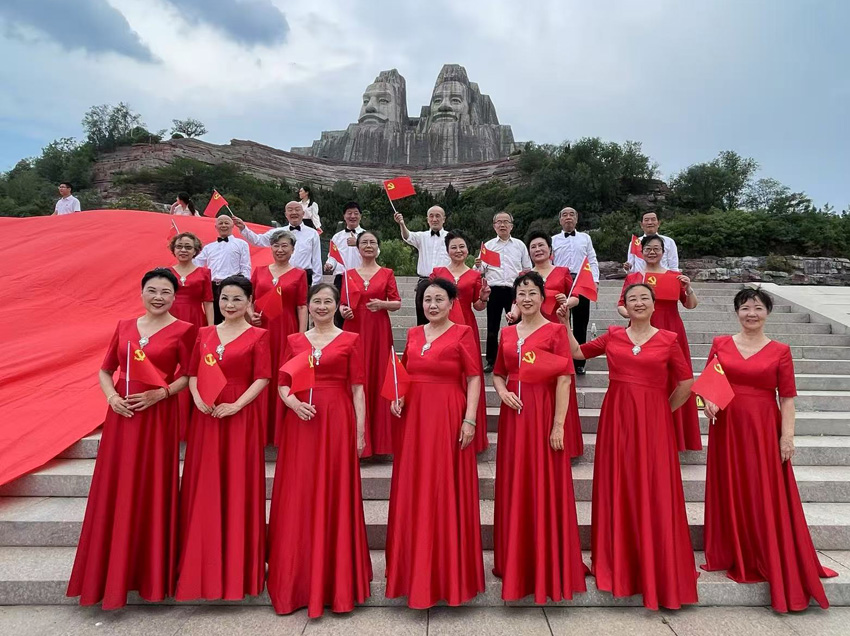 七.一前夕,郑州市金水区文化馆月光合唱团参加了由郑州市非遗保护和文旅文创融合发展中心和黄河文化公园为庆祝中国共产党诞辰104周年,在著名的黄河游览区联合举办了一场别开生面的庆祝活动,用实际行动讴歌我党的的丰功伟绩,为党庆生。