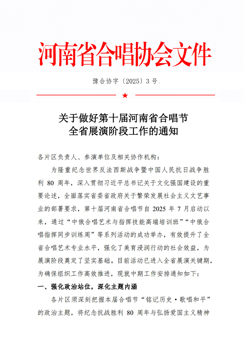 关于做好第十届河南省合唱节全省